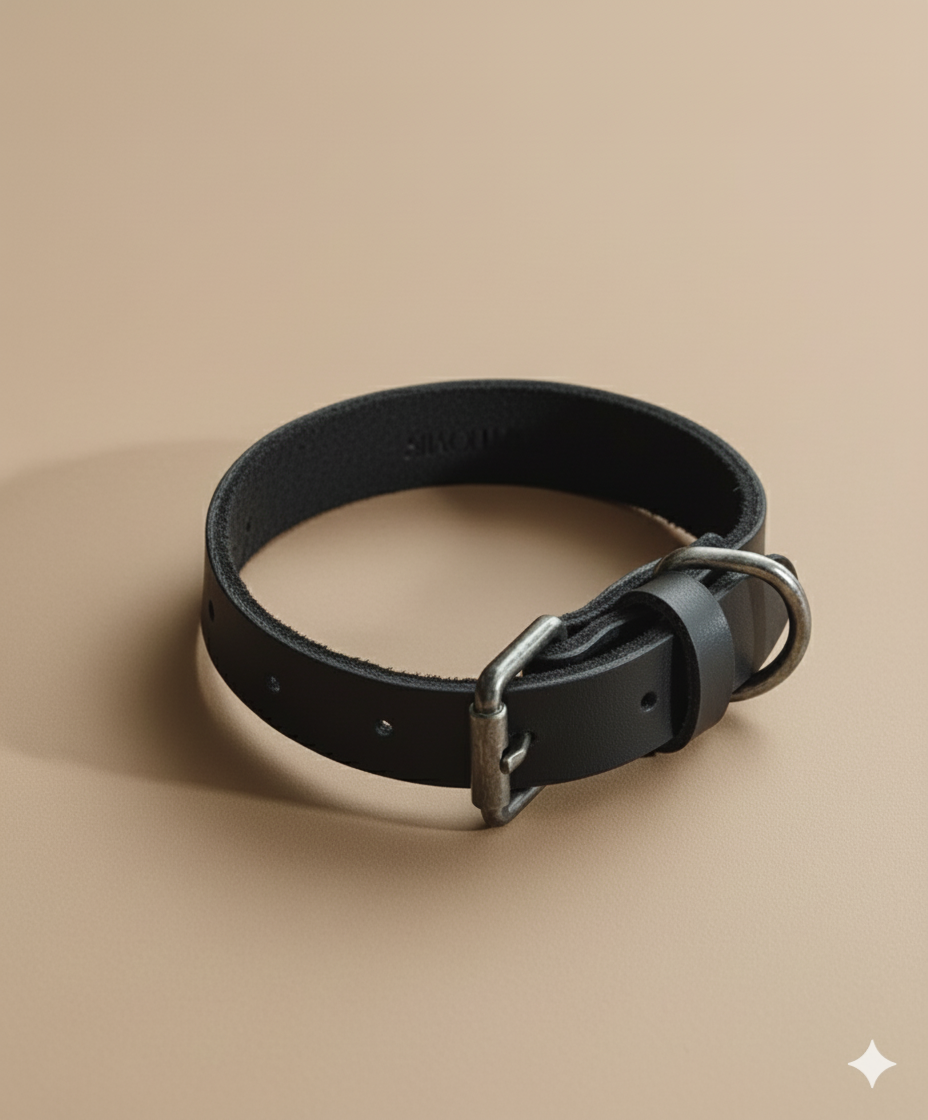 Collar de piel resistente y cómodo, diseñado para ofrecer seguridad y libertad de movimiento. Elegante, duradero y fácil de ajustar, ideal para el uso diario y paseos tranquilos.